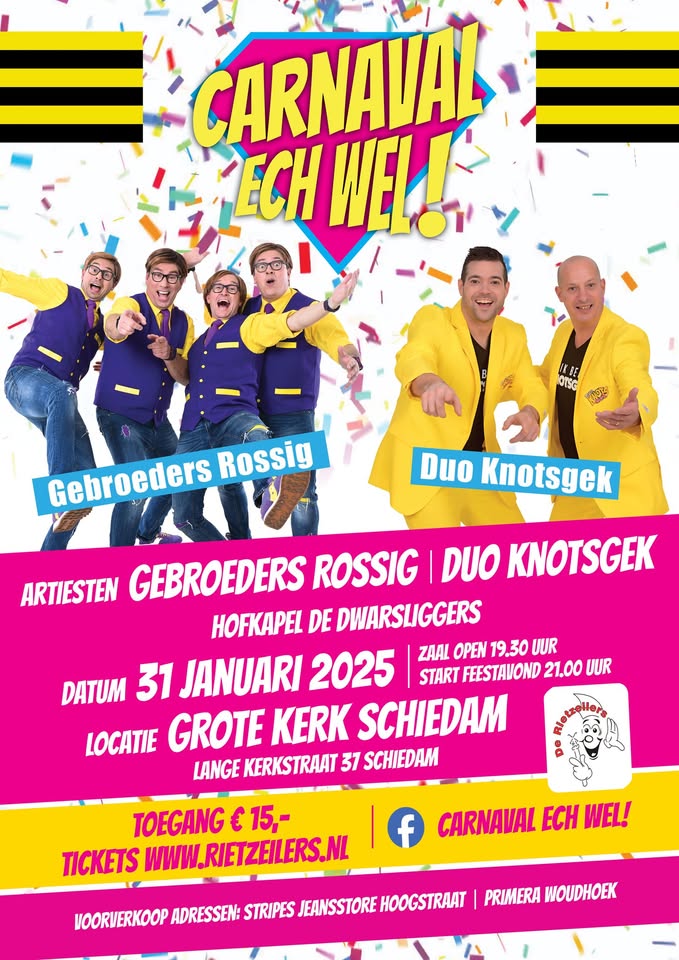 Ook dit jaar komt CV de Rietzeilers met HET Carnavalsfeest van het jaar. Komt met je vereniging en vrienden om te genieten van de gekste artiesten en hos erop los.