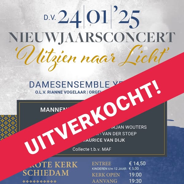 Welkom op het nieuwjaarsconcert van Damesensemble Yerusha in de grote Kerk van Schiedam, na afloop is er voor elke bezoeker een hapje en een drankje.